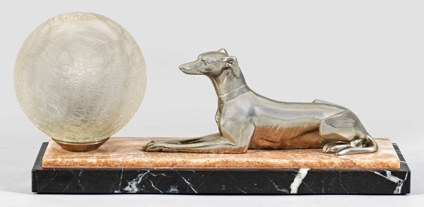 Lot 620: Figürliche Art Déco-Tischlampe mit Windhund