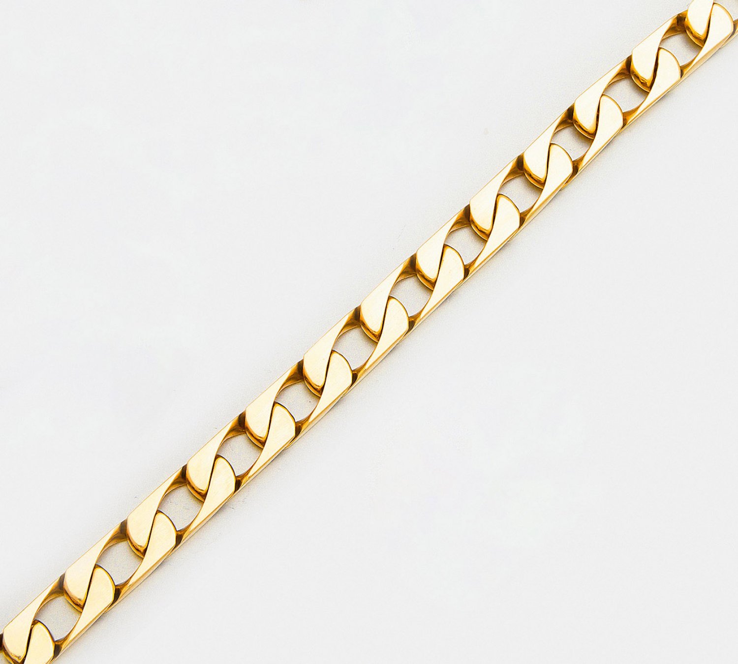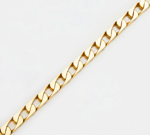 Modernes Flachpanzer-Armband Gelbgold, gest. 585. Schauseitig satiniert. Gew. ca. 47,51 g.