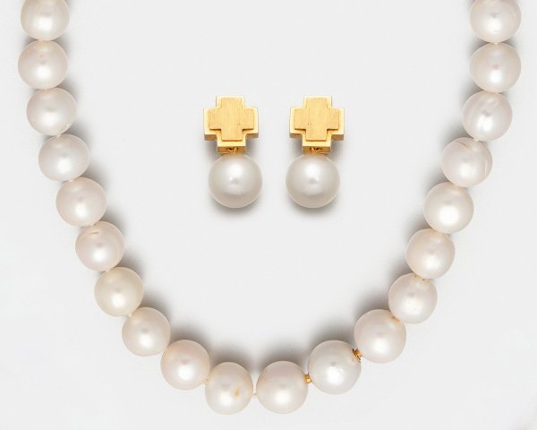 Lot 1162: Klassisches Südsee-Perlcollier mit Ohrringen von Katzler