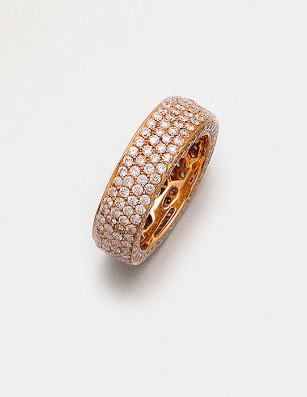 Hochfeiner Brillant-Bandring Roségold, gest. 750. Umlaufend besetzt mit Brillanten von zus. ca. 3,65 ct. (G-H/vvs) in Pavéfassung. Gew. ca. 6,55 g.