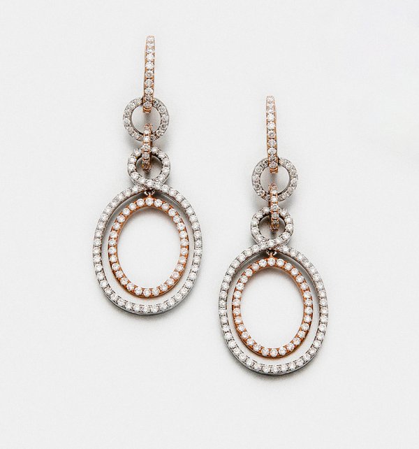 Lot 1279: Paar elegante Brillant-Ohrgehänge à deux couleurs