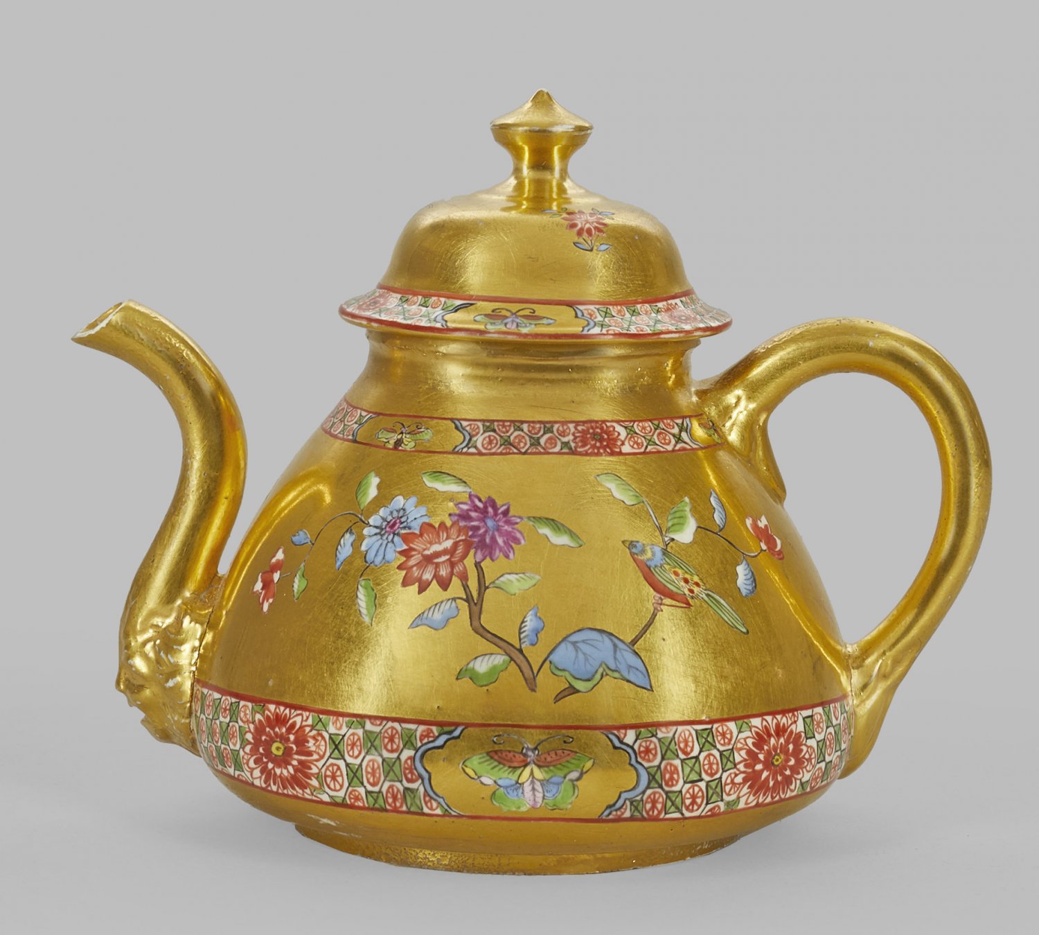 Lot 2185: Seltene frühe Goldfond-Teekanne mit Indianischem Blumendekor