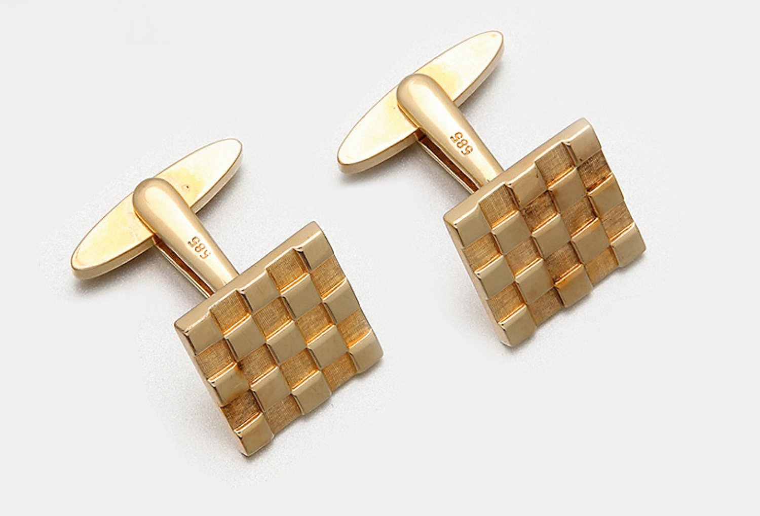 Paar Manschettenknöpfe Gelbgold, gest. 585. Boutons mit Schachbrettmuster. Ges.-Gew. ca.13,11 g.
