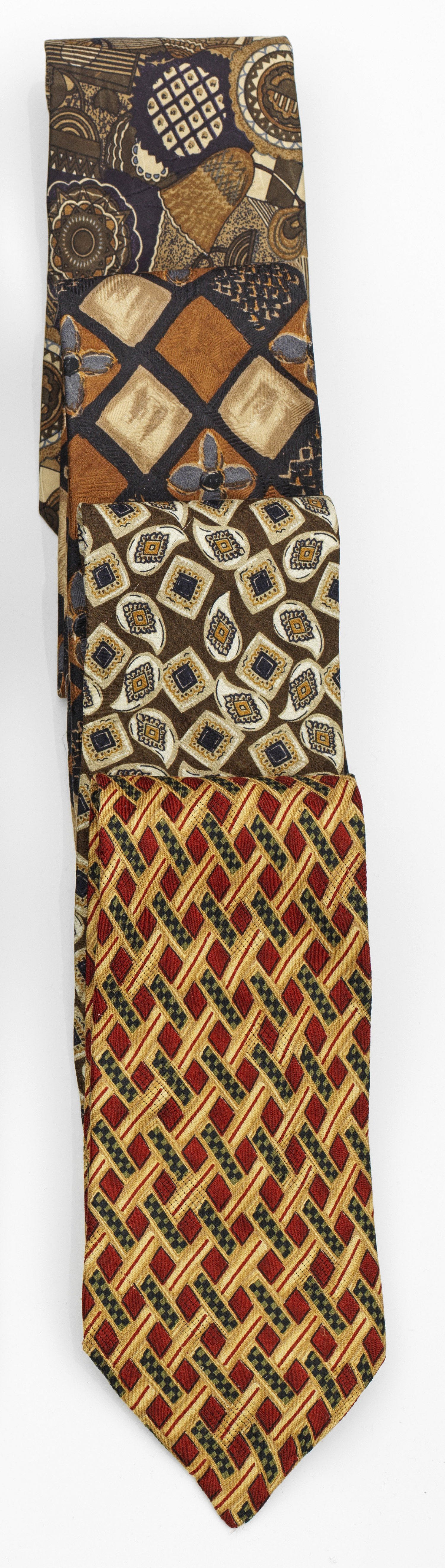 A mixed lot of four vintage ties. Manufacturer's mark. Signs of wear.