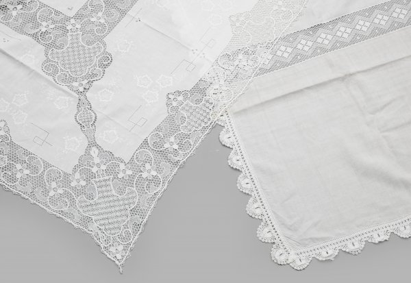 Two linen and cotton tablecloths with laces.