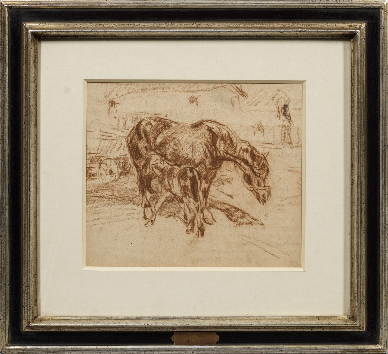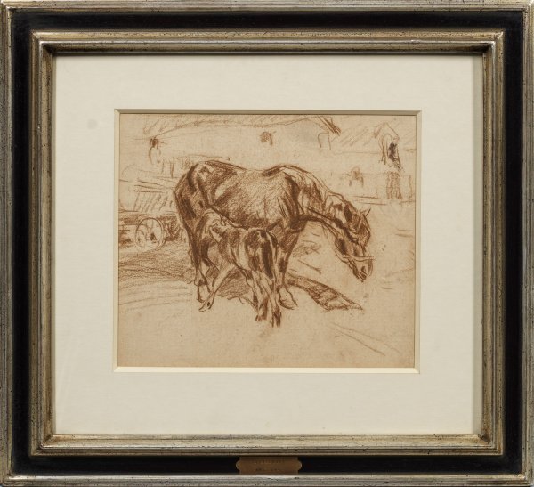 Braune Kreide/Papier. Auf dem Rückenkarton Nachlass-Stempel u. -Etikett mit Nr. 656. 22,5 cm x 26,5 cm (Passepartoutausschnitt). Rahmen.