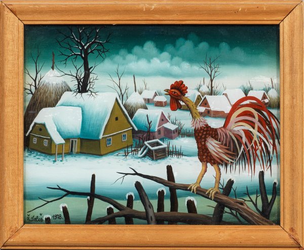 A pair of reverse paintings on glass. Each signed and dated 1978. Titled in Croatian on the reverse, artist's studio stamp with location Ðurdevac.