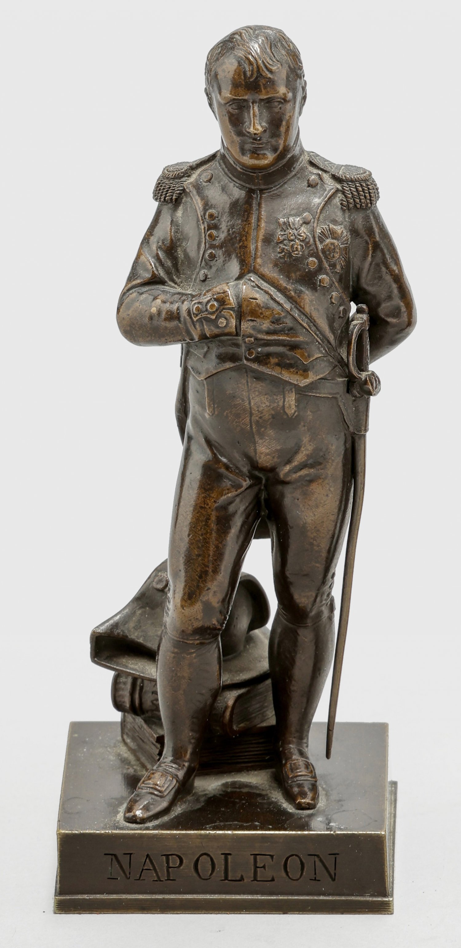 Bronze, dunkelbraun patiniert. An der Plinthe betitelt, signiert, dat. 1838 und Pariser Gießerstempel "Richard, Eck et Durand" ; Ges.-H. 14,5 cm.