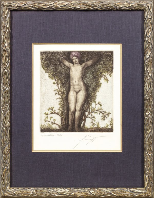 Radierung/Papier, 1976. Aquarellierter Probedruck. Sign. u. bez. "aquarellierte Probe". Wvz. Weis/Fuchs 244. Plattenmaß 18,7 cm x 16,8 cm. Rahmen.
