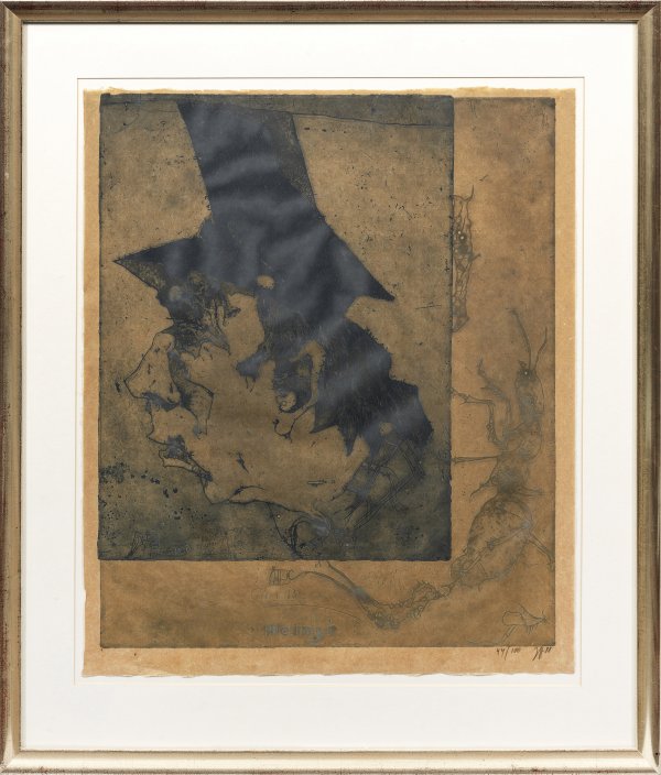 Etching and aquatint in colour on brown Japan paper, 1988. Hand-signed, dated and numbered 44/100. Titled and dated twice on the plate.