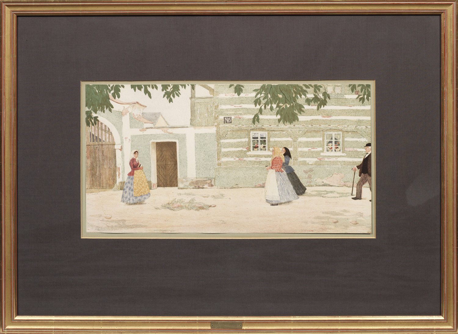 Farblithographie/Papier, 1902. R. o. im Stein monogr.; Hrsg. Gesellschaft für vervielfältigende Kunst, Wien. Blattgroße Darstellung, ca. 24 cm x 46 cm. Rahmen.