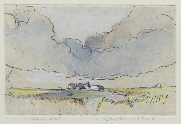 Three sheets with hand-coloured etchings on paper ca. 1975-1981. Each hand-signed and titled two of them dated (19)81.