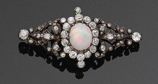 Lot 1041: Belle Epoque Opal-Diamantbrosche