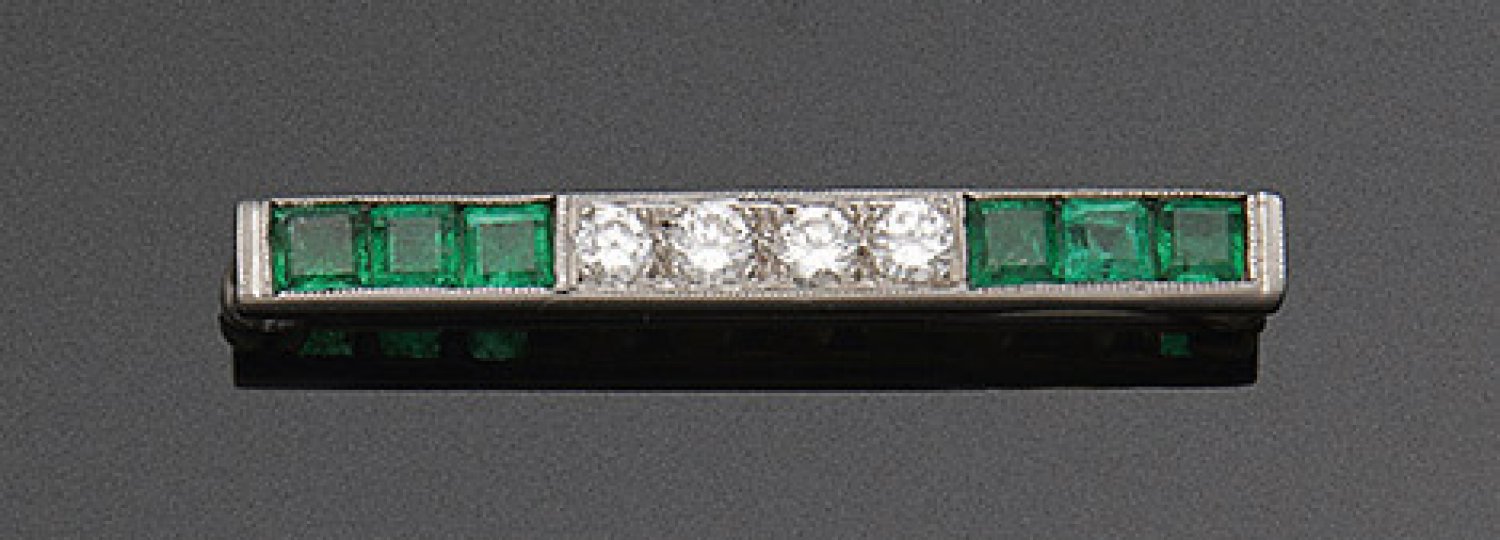 Lot 1043: Art Déco-Smaragd-Diamant-Stabnadel