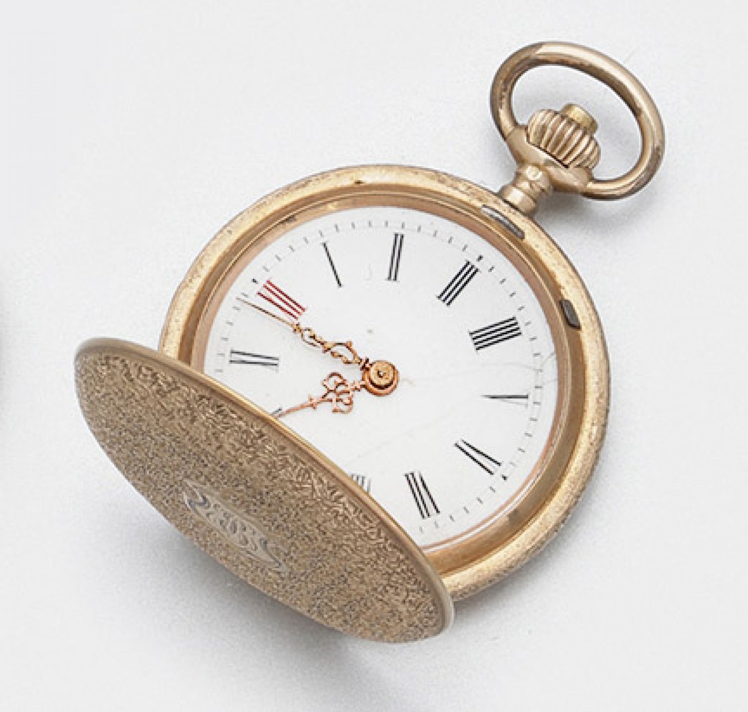 Schweiz um 1910 Damentaschenuhr Schweiz um 1910 Roségold gest. 585. Zweideckelgehäuse schauseitig flächendeckender ornamtaler Reliefdekor weißes Emailzifferblatt mit schwarzen römischen Zahlen und goldenen Breguetzeigern. Mechanisches Werk mit Handaufzug.