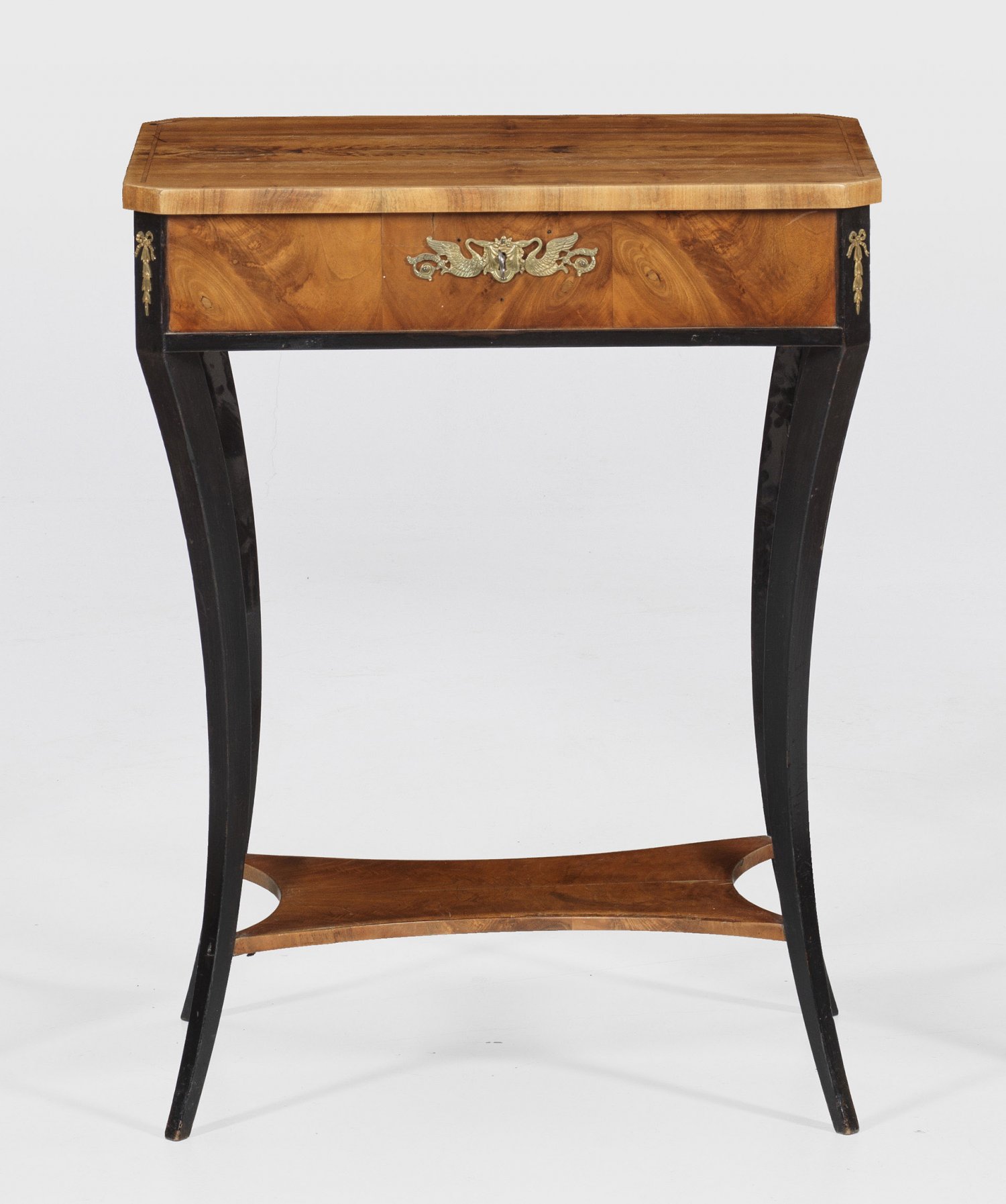 A Danube Monarchy walnut veneered and partly ebonized Biedermeier sewing table.