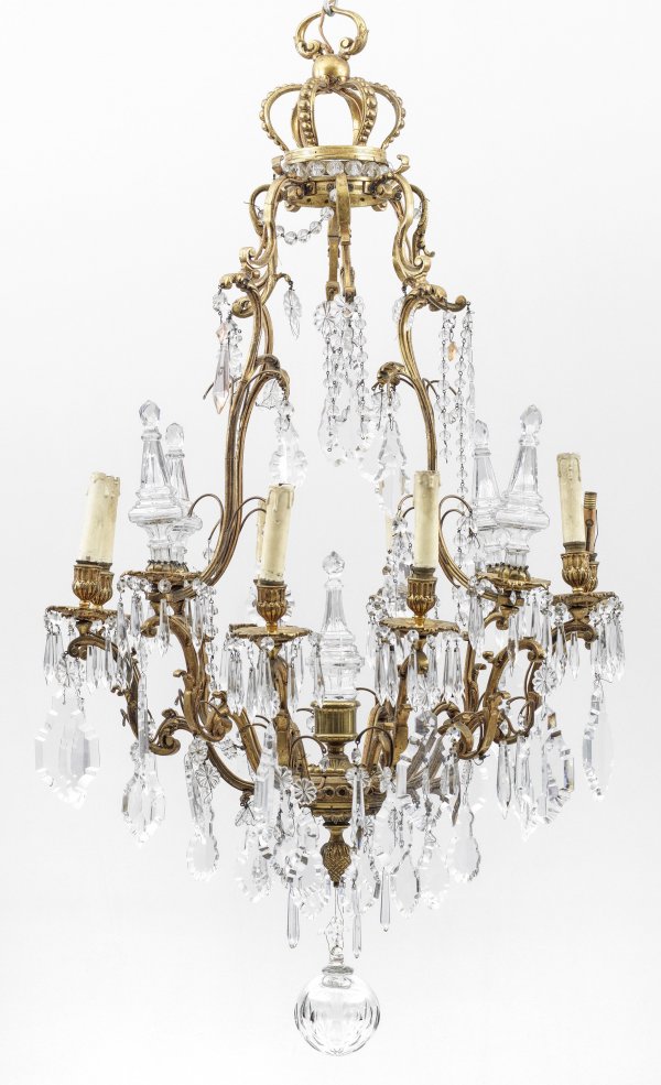 A large French gilt bronze and crystal glass chandelier.