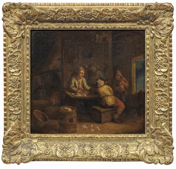 Tonig gemaltes Genrebild Sorghs, der in seinen bäuerlichen Interieurszenen wesentlich durch seine niederländisch-flämischen Malerkollegen Adriaen Brouwer, Adriaen van Ostade und David Teniers d. J. beeinflusst wurde. Sorgh war ab 1636/37 Mitglied der Rotterdam Gilde, der er 1659 auch vorstand. Öl/Lwd., doubl.; Auf der Schmalseite der Sitzbank sign.; 32 cm x 35 cm. Rahmen.