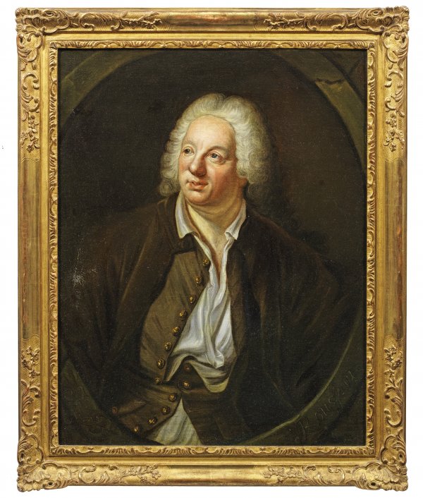 In ein steinernes Oval komponiertes, ausdrucksvoll und lebendig charakterisierendes Porträt des Dichters und Schriftstellers (1671 -1741), unterhalb bez. "J. B. Rousseau". Die Darstellung ist ein auf den Kopf und den Oberkörper konzentrierter Teilausschnitt nach dem bekannten Gemälde Aveds, das er 1738 schuf und noch im selben Jahr auf dem Salon zeigte. Außer der ersten Version sind mehrere Repliken und Kopien aus dem 18. Jh. bekannt. Aved gehörte durch das von ihm entwickelte Konzept des "psychologischen Porträts" zu den führenden und künstlerisch bedeutendsten französischen Bildnismalern seiner Zeit und stellte vielfach auf dem Salon aus (zuletzt 1759). 1731 wurde er freies, 1734 volles Mitglied der Académie royale de peinture et de sculpture. Öl/Lwd.; 79,5 cm x 63,5 cm. Rahmen.