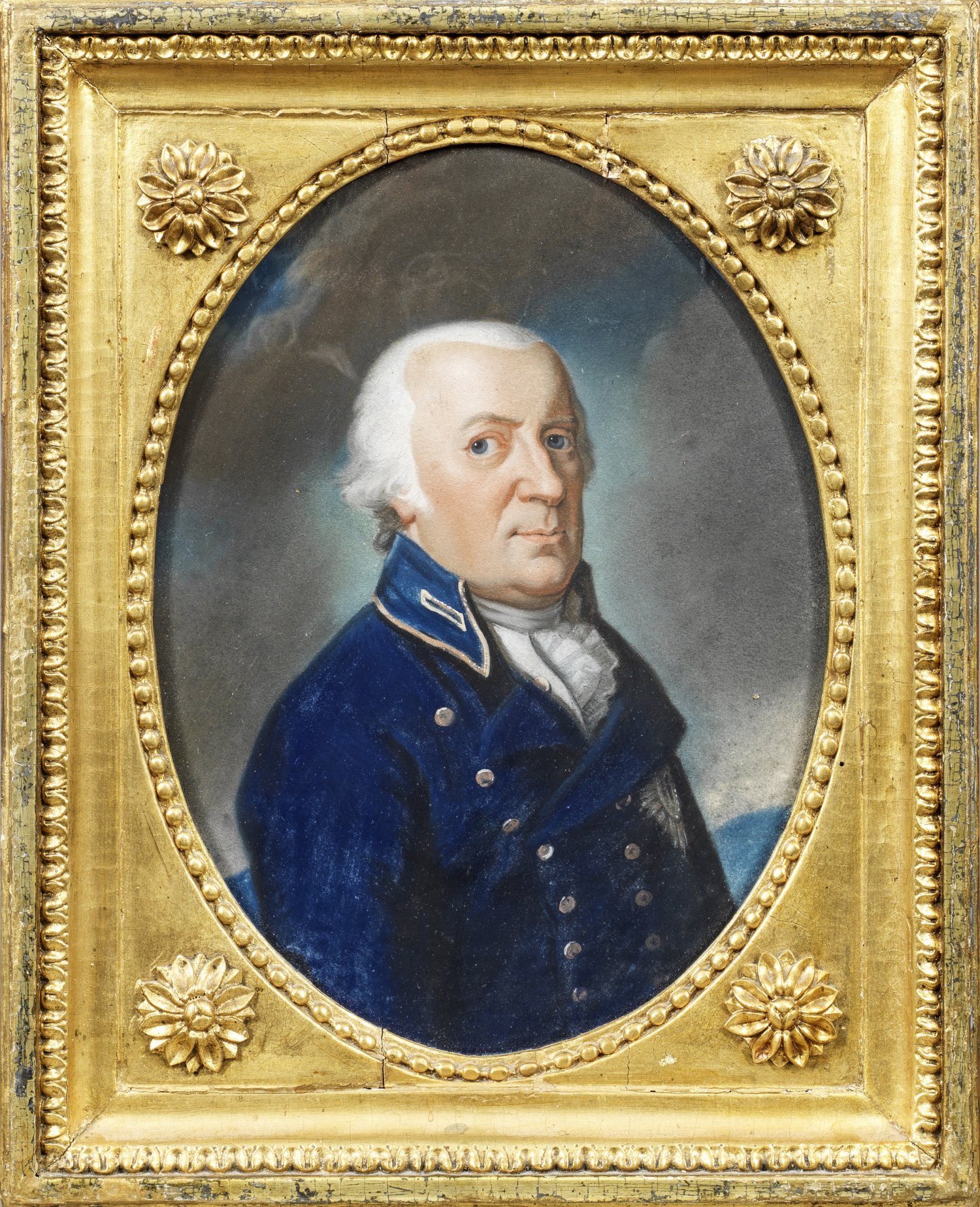 Attributed to Johann Heinrich Schröder (1757 - 1812). Pastel with whitening on paper. Old label with information about the sitter and attribution to Schröder on the reverse of the backing board.