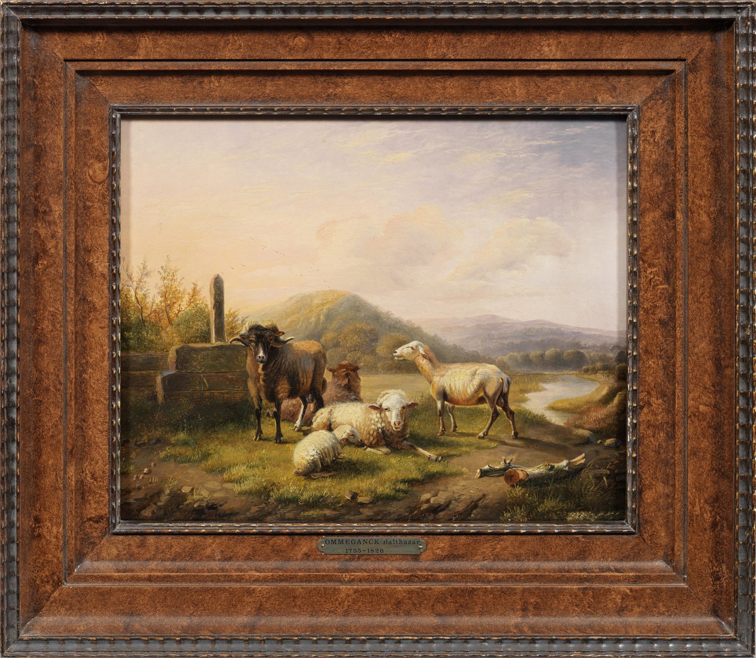 Feinflüssig gemaltes, lebendig geschildertes Tierstück Ommegancks, der durch seine Motive mit Hirten und naturgetreu dargestellten Tieren in idyllischen, idealisierten Landschaften bekannt wurde. Ommeganck war einer der bedeutendsten und gefragtesten Tiermaler seiner Zeit. Sein berühmtester Schüler ist Eugčne Verboeckhoven. Öl/Eichenholztafel. L. u. sign.; 25,5 cm x 31,5 cm. Rahmen.