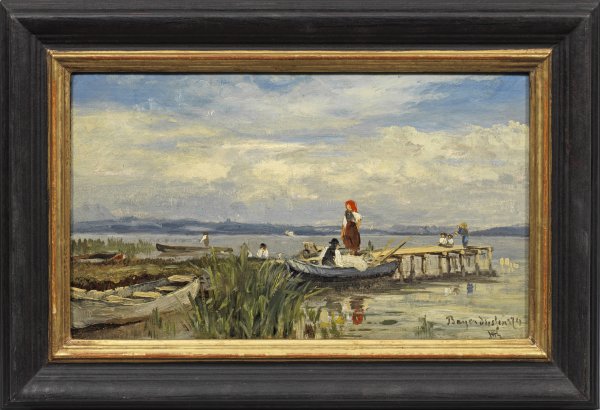Mit schnellem, teilw. pastosem Duktus gemalte, sommerlich gestimmte, frühe Landschaftsimpression Raschs, der in Karlsruhe und München bei Hans Gude und Arthur von Ramberg studierte. Öl/Lwd.; R. u. sign. u. dat. (1)878 mit Ortsangabe Bayerdießen. 19,5 cm x 31 cm. Rahmen.
