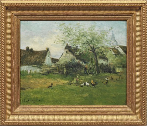 Mit lockerem Duktus gemaltes Werk in pastelltonigem Kolorit, wohl aus dem reifen Oeuvre des Künstlers, das Einflüsse der Haager Schule und der Schule von Barbizon widerspiegelt. Öl/Lwd.; L. u. sign.; 32,5 cm x 40,5 cm. Rahmen.