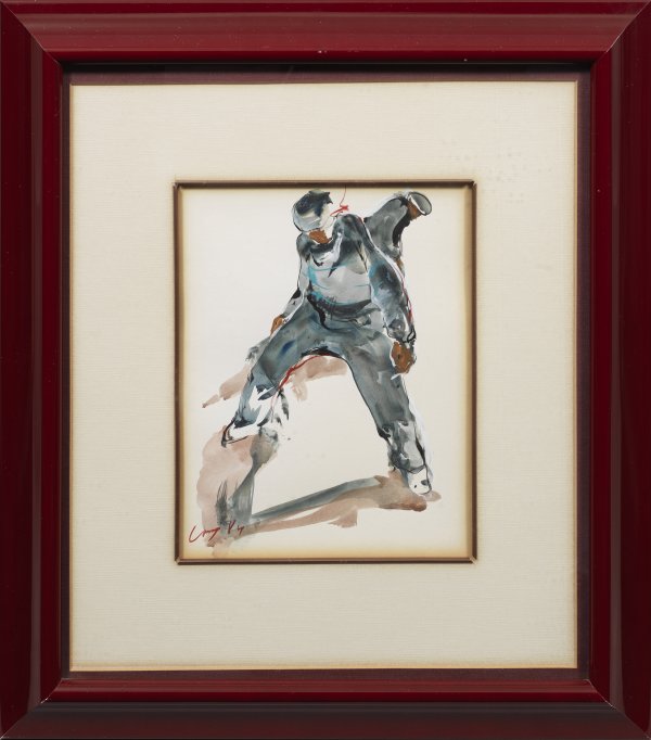 Zwei Blätter. Neoexpressionistische Darstellungen im Stil der "Jungen Wilden". Aquarell u. Gouache/Papier. L. u. undeutl. sign. u. dat. (19)84. Lichtrandig. Ca. 29,5 cm x 23,5 cm (Passepartoutausschnitt). Rahmen.