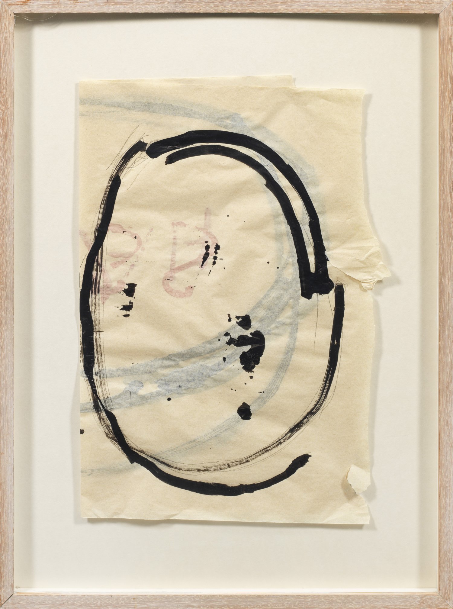 Abstrakte Ovalkomposition auf einem umgelegt gefalteten, teilw. bewusst angerissenen Blatt, wodurch die Arbeit eine dreidimensionale Wirkung erhält. Seit den 1980er Jahren erlangte Prangenberg durch seine Teilnahme an der Documenta 7 in Kassel (1982) internationale Bekanntheit und war danach auf zahlreichen Ausstellungen vertreten. Tusche u. Aquarell/dünnes Papier. Verso auf dem Rückenkarton bez. u. betitelt. Blatt ca. 51 cm x 53 cm. Rahmen.