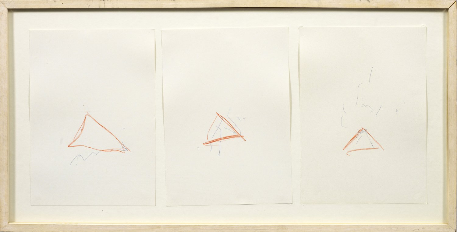 Three sheets with abstract drawings in pencil and coloured chalk. Inscribed and dated 1979 on the backing board.