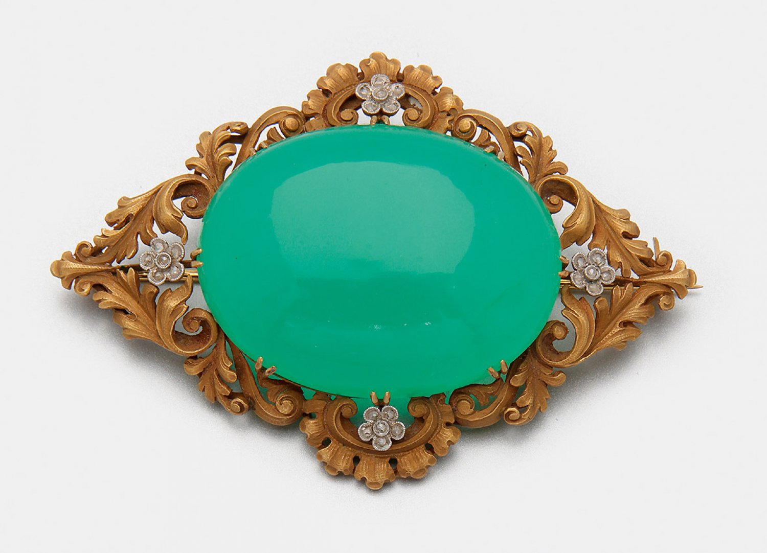 Lot 2810: Pompöse Belle Epoque-Brosche mit Chrysopras