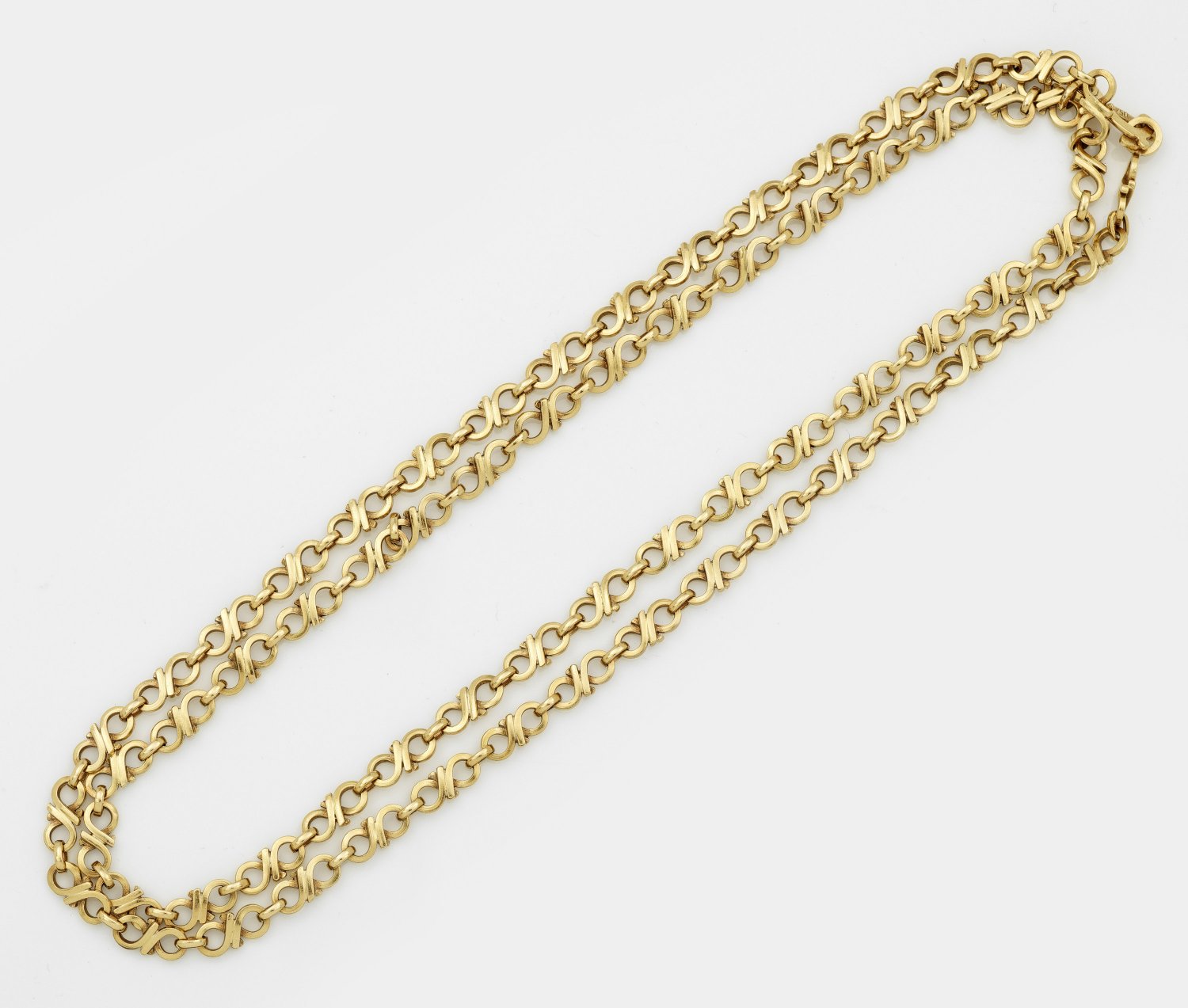 Dekorative Gold-Sautoire Gelbgold gest. 750. Kette aus stilisierten achter Gliedern. Gew. ca. 47 70 g.