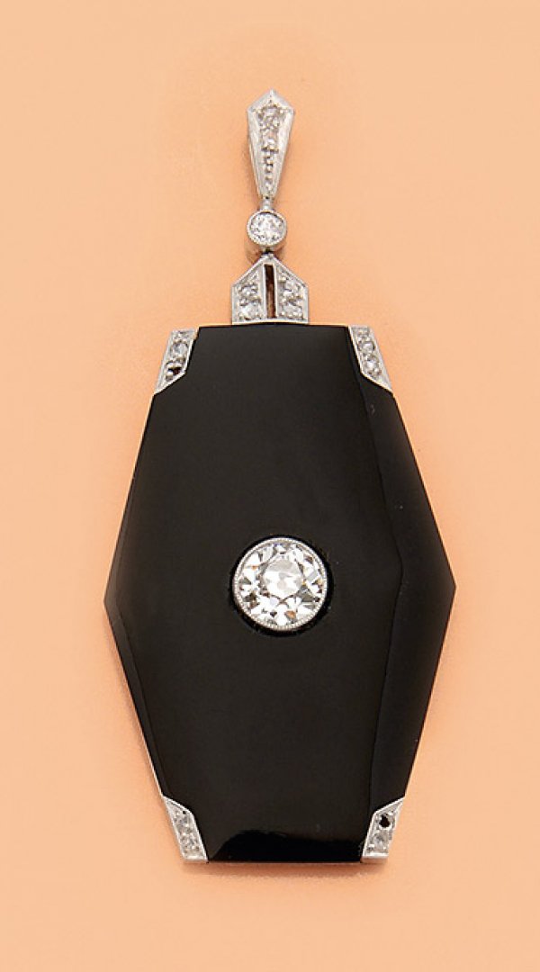 Lot 2871: Art Déco-Onyx-Diamant-Anhänger