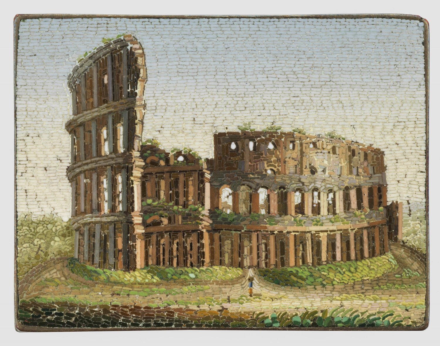 A micromosaic of the ruins of the Colosseum in Rome.