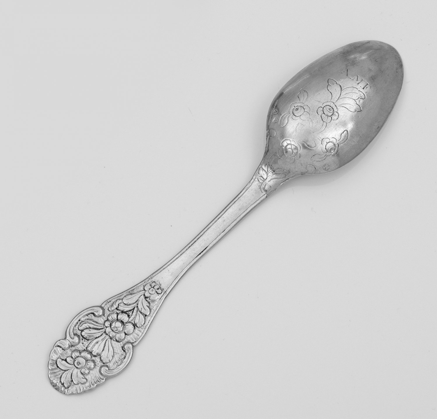 A Nuremberg silver chased Rococo spoon by Georg Ludwig Treiber (master since 1758). Test, city and master´s mark.