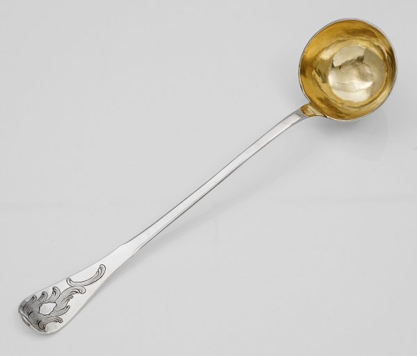 A parcel gilt silver Rococo soup ladle by Johann Christian Wrigge (master since 1762). City and master´s mark.