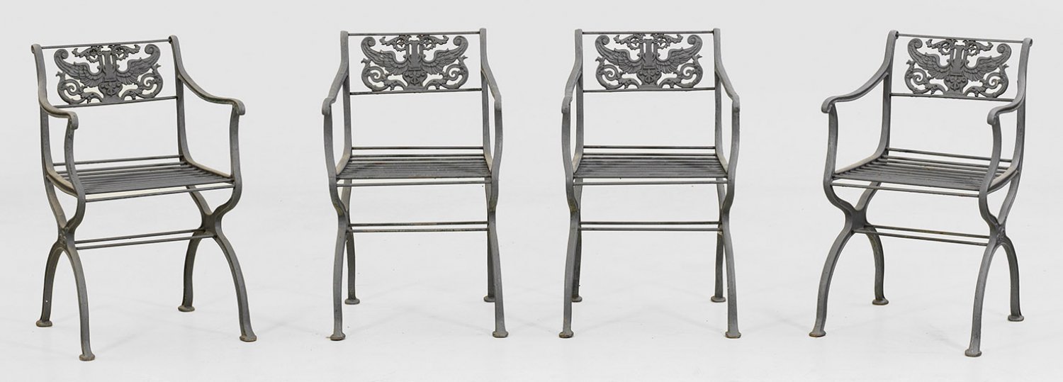 Satz von vier Garten-Armlehnstühlen nach einem Entwurf von Karl Friedrich Schinkel