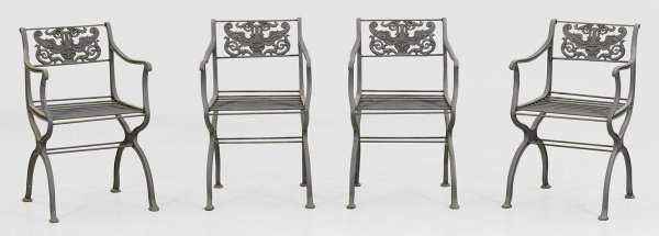 A set of four cast iron garden armchairs according to a design by Karl Friedrich Schinkel.