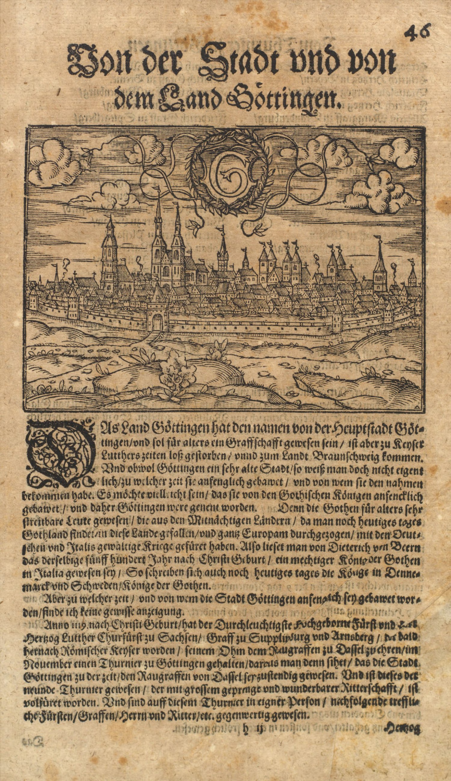 Lot 3304: Textblatt mit früher Göttingen-Ansicht in der Renaissance