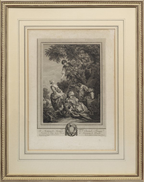 Zwei Blätter mit Kupferstichen, 1775. In der Platte sign. u. betitelt. Nach den beiden 1765 im Salon gezeigten Gouachen von Pierre-Antoine Baudouin (1723 - 1769). Stockfleckig. Plattenmaß ca. 18 x 26 cm. Rahmen.
