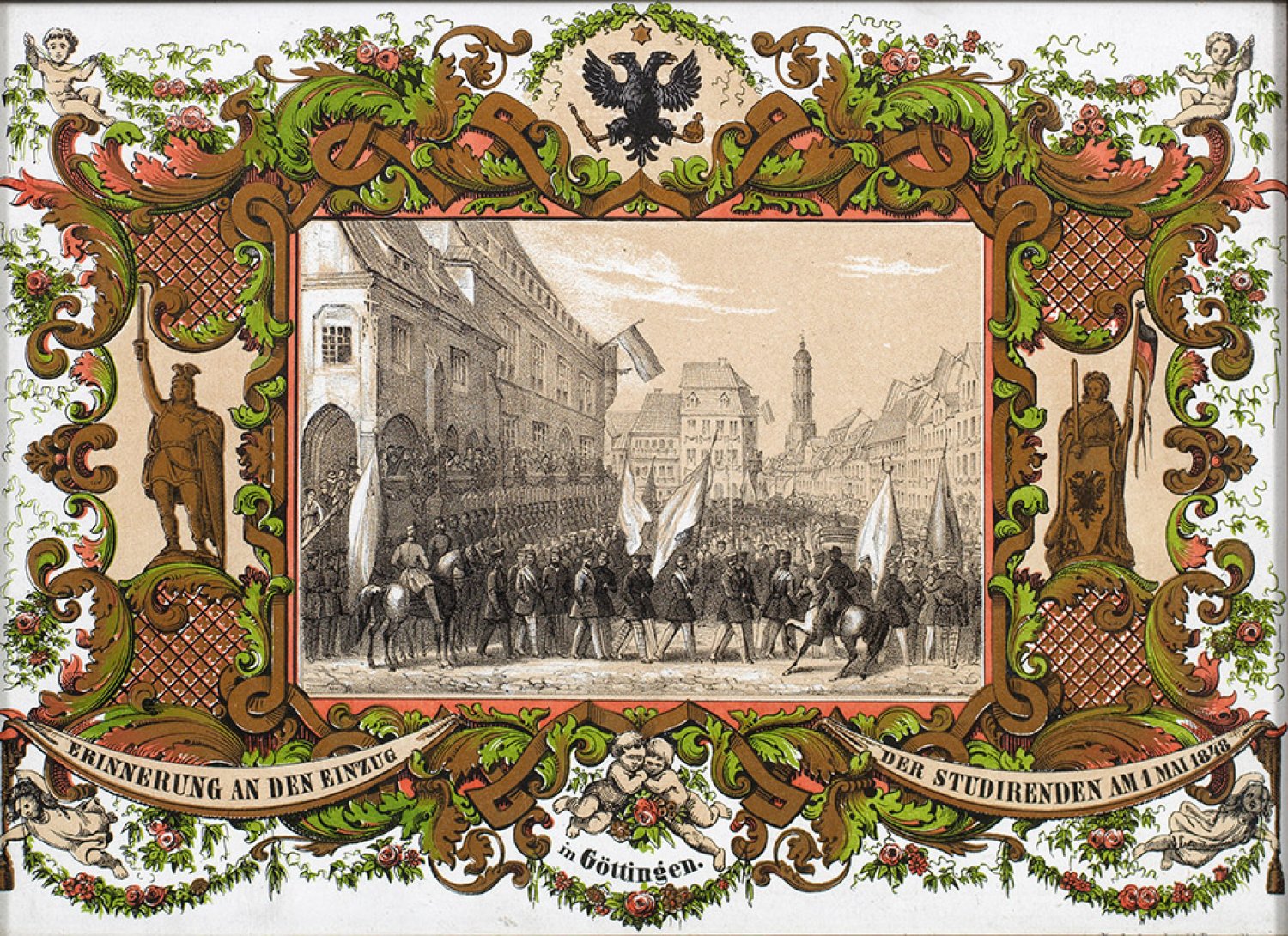 "Erinnerung an Einzug der Studirenden am 1 May 1848 in Göttingen". Originaltitel