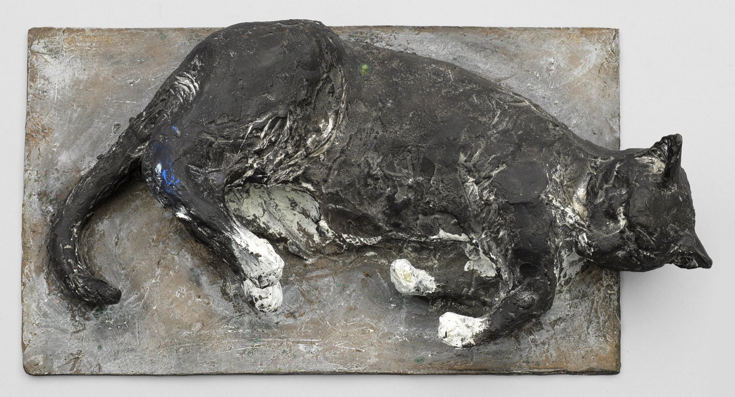 Bronze, patiniert und partiell bemalt, 2007. Sign. u. dat.; Nummeriert 2/6. Oswald, der 1981 - 1990 ein Bildhauerstudium in Mainz absolvierte, wurde vor allem für seine in Eisen und Bronze gegossenen Plastiken bekannter Persönlichkeiten und seine Tänzerdarstellungen im öffentlichen Raum bekannt. Seit den 1980er Jahren stellte er vielfach aus und erhielt mehrere Auszeichnungen, bereits 1985 den Daniel-Henry-Kahnweiler-Preis. H. 12 cm x 44 cm x 26,5 cm.
