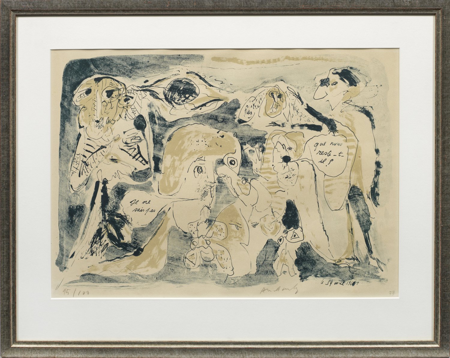 Farblithographie/Papier, 1961. Sign. u. nummeriert 15/100; im Stein dat. u. betitelt. Expressives Blatt des Künstlers, der 1949 Mitglied der Künstlergruppe "CoBra" wurde und neben Asger Jorn, Constant, Karel Appel, Corneille und Karl Otto Götz einer der bedeutendsten Protagonisten ist. 42,5 cm x 61 cm (Passepartoutausschnitt). Rahmen.