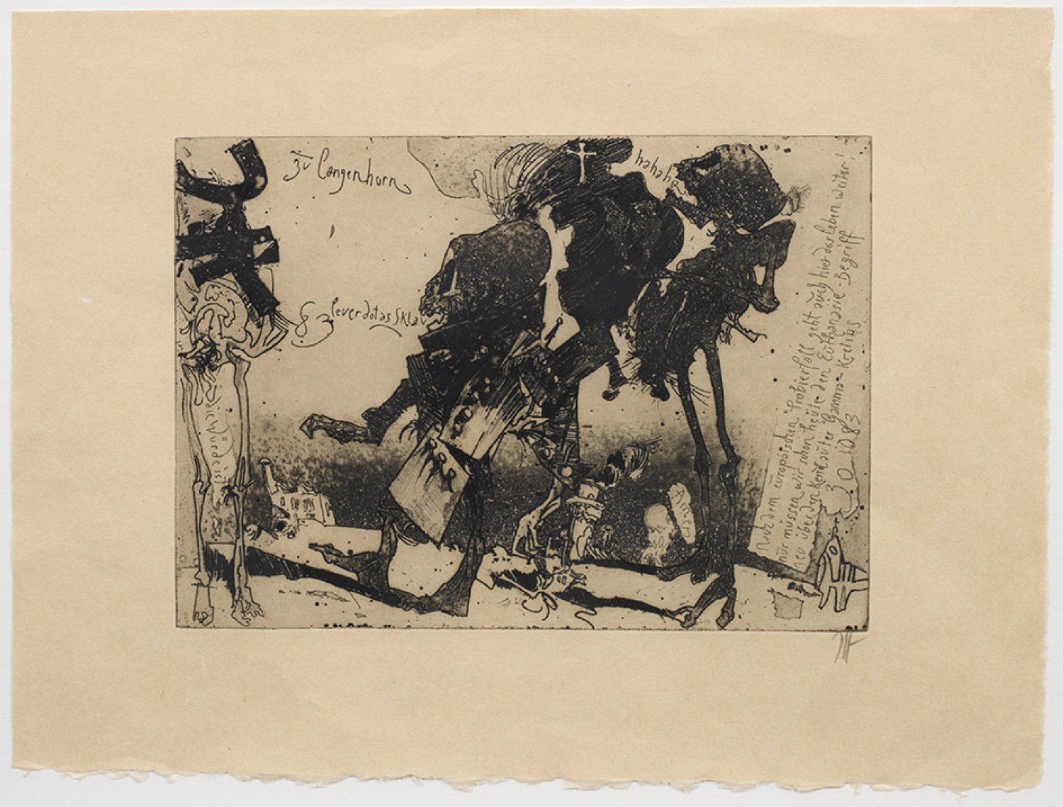 Radierung u. Aquatinata/Japanbütten, 1983. Sign.; In der Platte betitelt u. dat. 30(.)10(. 19)83. Wvz. Kruglewsky 75. Schöner, vollrandiger Abzug aus der Edition für die Griffelkunst-Vereinigung, Hamburg. Plattenmaß 21 cm x 29,5 cm; Blatt ca. 33 cm x 44 cm. Rahmen.