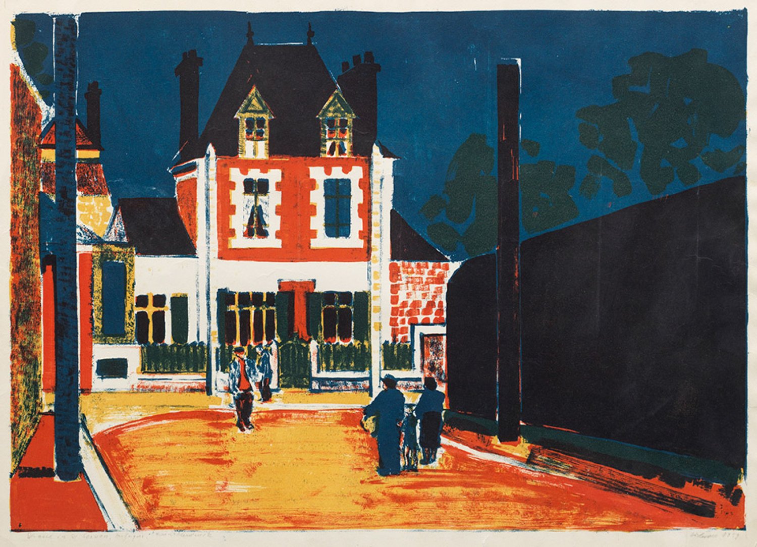 Farblithographie/Papier, 1959. Sign. u. dat., betitelt sowie bez. "Handdruck". Lagerspuren mit minim. Läsuren bzw. ger. Knickfalten im Blattrand. Darstellung ca. 44,2 cm x 63 cm; Blatt 53,5 cm x 68,5 cm. Rahmen.