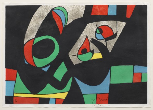 Lithograph in colours on parchment, 1971. Sheet no. 5 from the portfolio "Le Lézard aux Plumes d'Or". Hand-signed and numbered 7/20. Printed by Mourlot. Paris. Published by Louis Broder, Paris.
