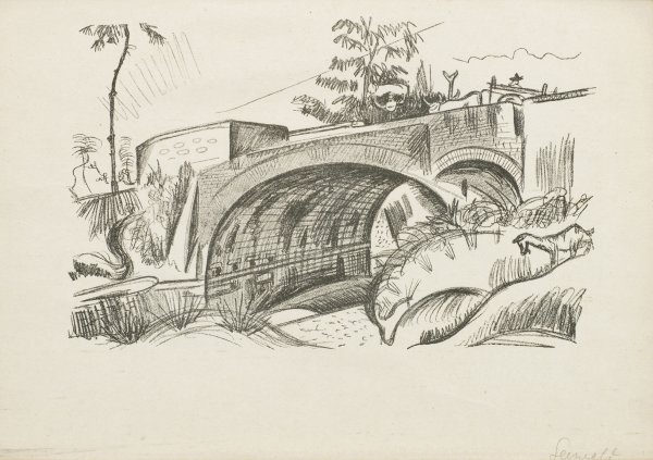 Lithographie/Papier, um 1919. Sign.; Darstellung ca. 14,5 cm x 22,5 cm; Blatt ca. 20 cm x 29,5 cm. Rahmen.