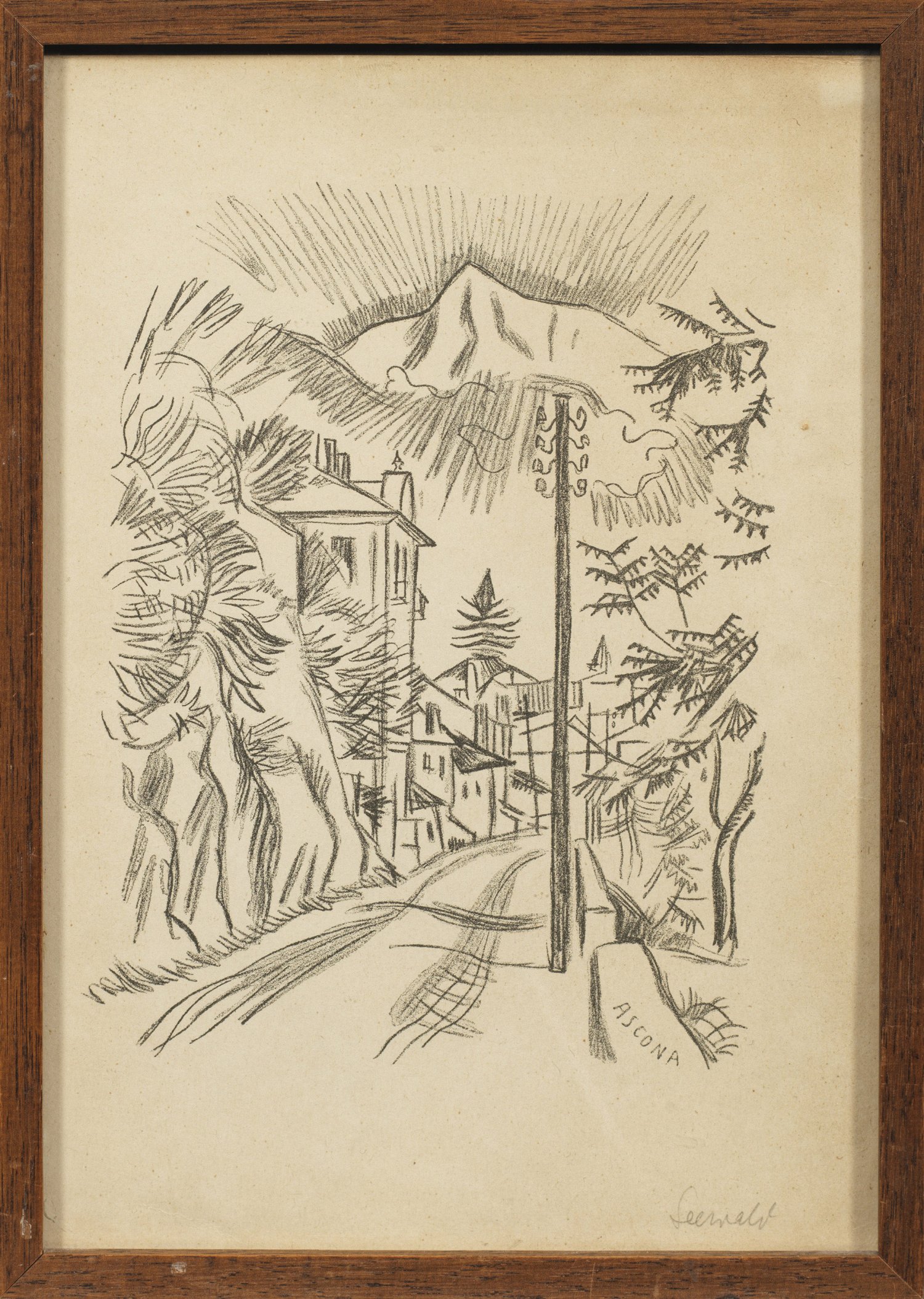 Lithographie/Papier, um 1919. Sign., im Stein betitelt. Darstellung ca. 21,5 cm x 16,3 cm; Blatt ca. 29,5 cm x 20,5 cm. Rahmen.