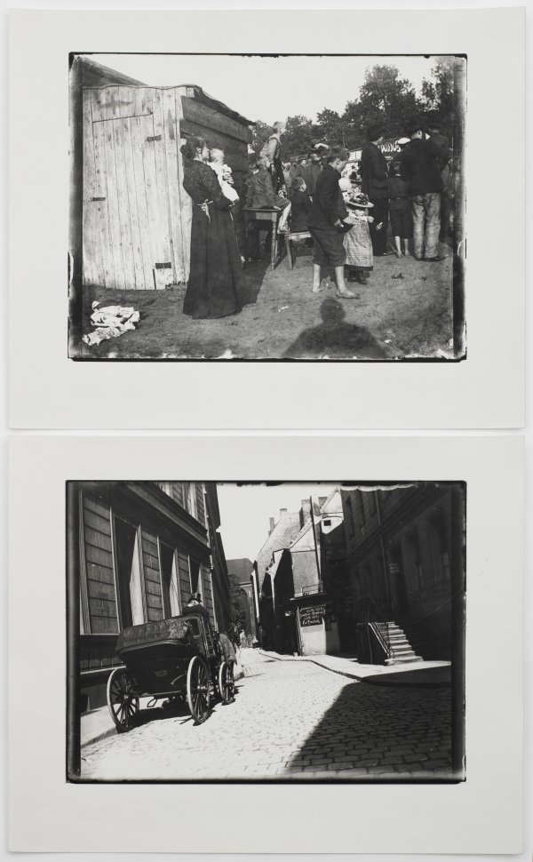 Silbergelatine-Abzüge von Originalnegativ aus der Photographischen Sammlung der Berlinischen Galerie. Vier Fotografien aus einer einmaligen posthumen Auflage für die Griffelkunst 1997; eine Fotografie ("Reisigsammlerin") in einem Abzug durch Manfred Paul 1995, Nr. 7/30 aus einer Auflage von 30 Exemplaren zum 10-jährigen Bestehen der Galerie Bodo Niemann, Berlin. Verso jeweils mit dem Editions- bzw. Fotografenstempel. Papier ca. 24,2 cm x 29 cm-30 cm.