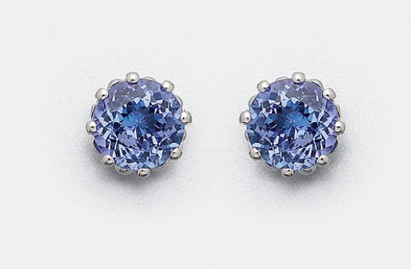 Pair of earrings set with two violet blue tansanites approx. 2,53 ct. and 2,56 ct., in 18 k white gold.